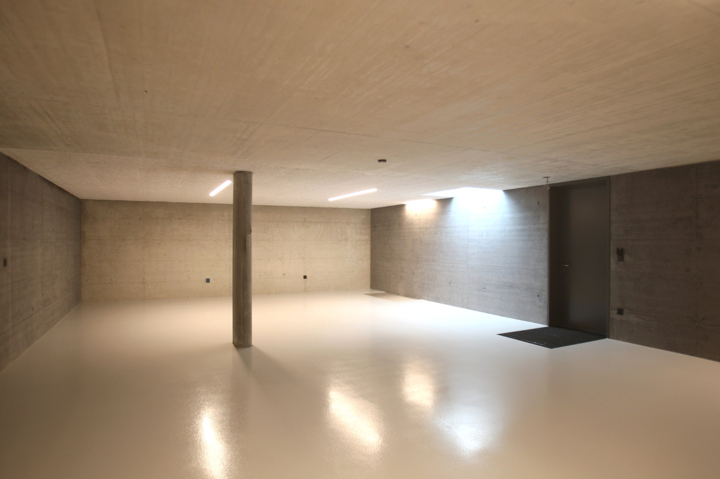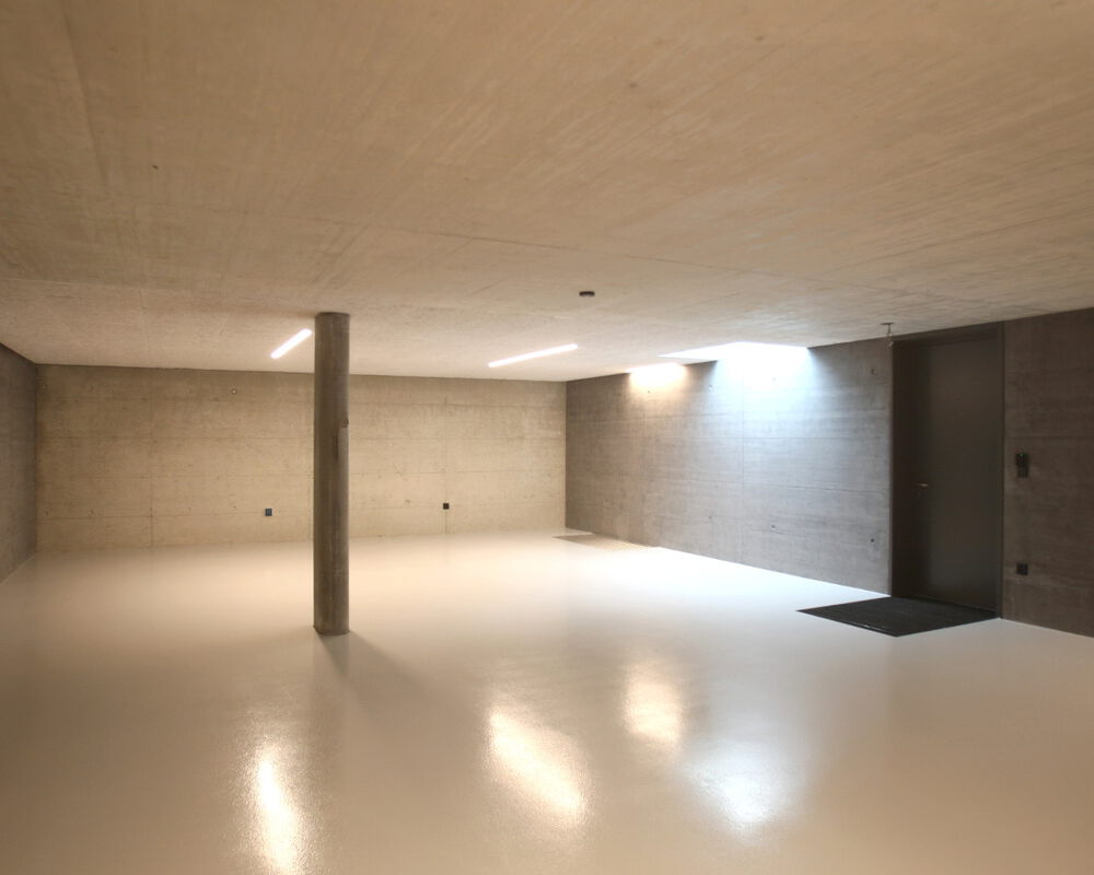 Massivbauweise mit einer Gebäudehülle aus eingefärbtem Sichtbeton.