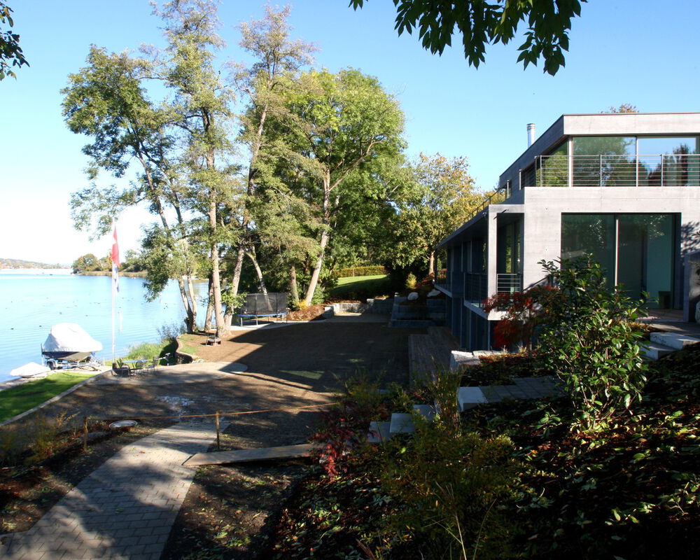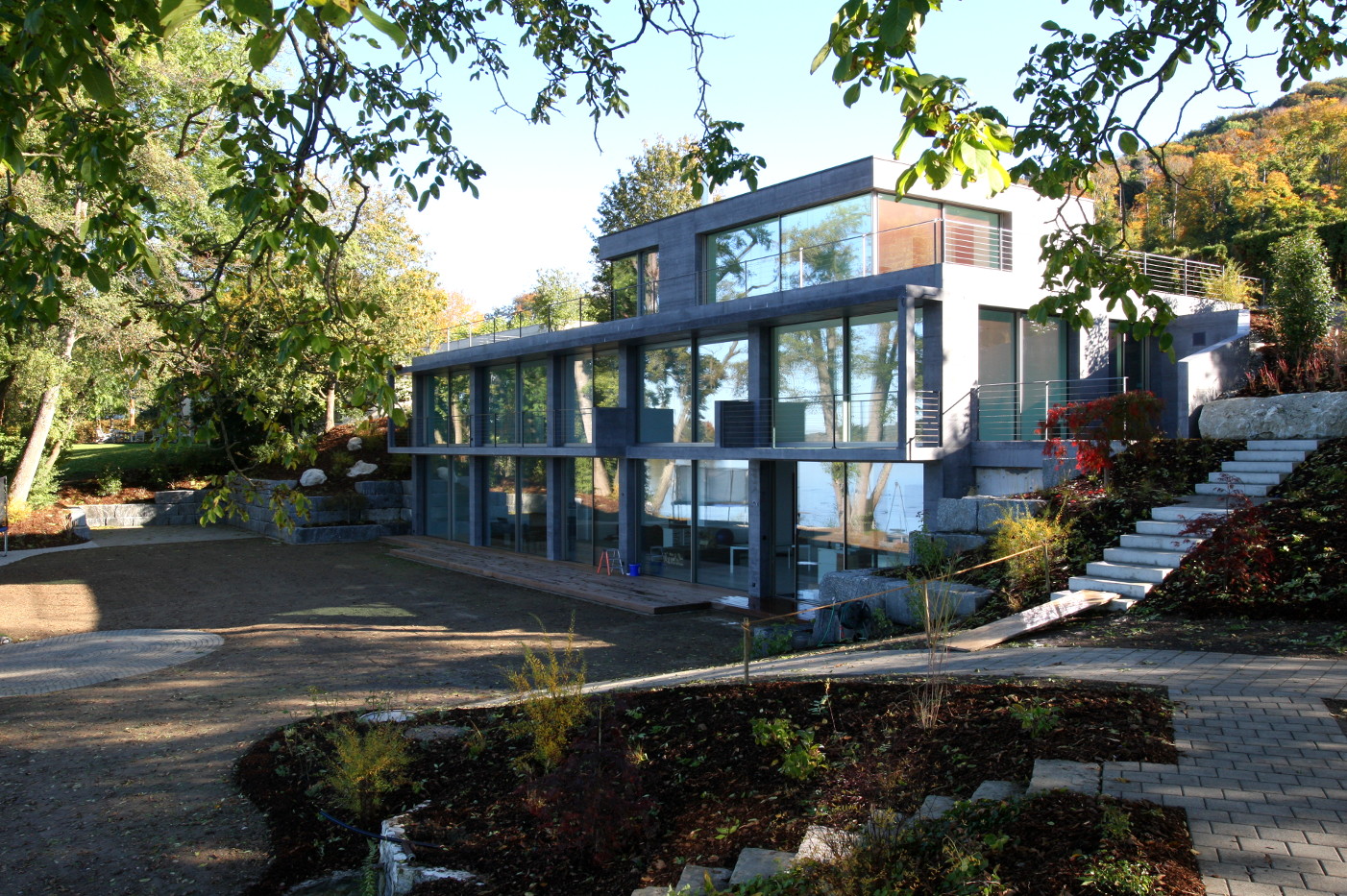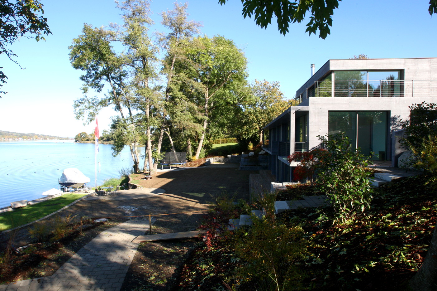 Der Neubau steht an einer einzigartigen Lage direkt am Untersee. Der grosszügige Baukörper wird 2-geschossig inkl. TG in den Hang eingegraben. Vom Zugang des Grundstückes bleibt so nur das zurückversetzte Attikageschoss sichtbar.