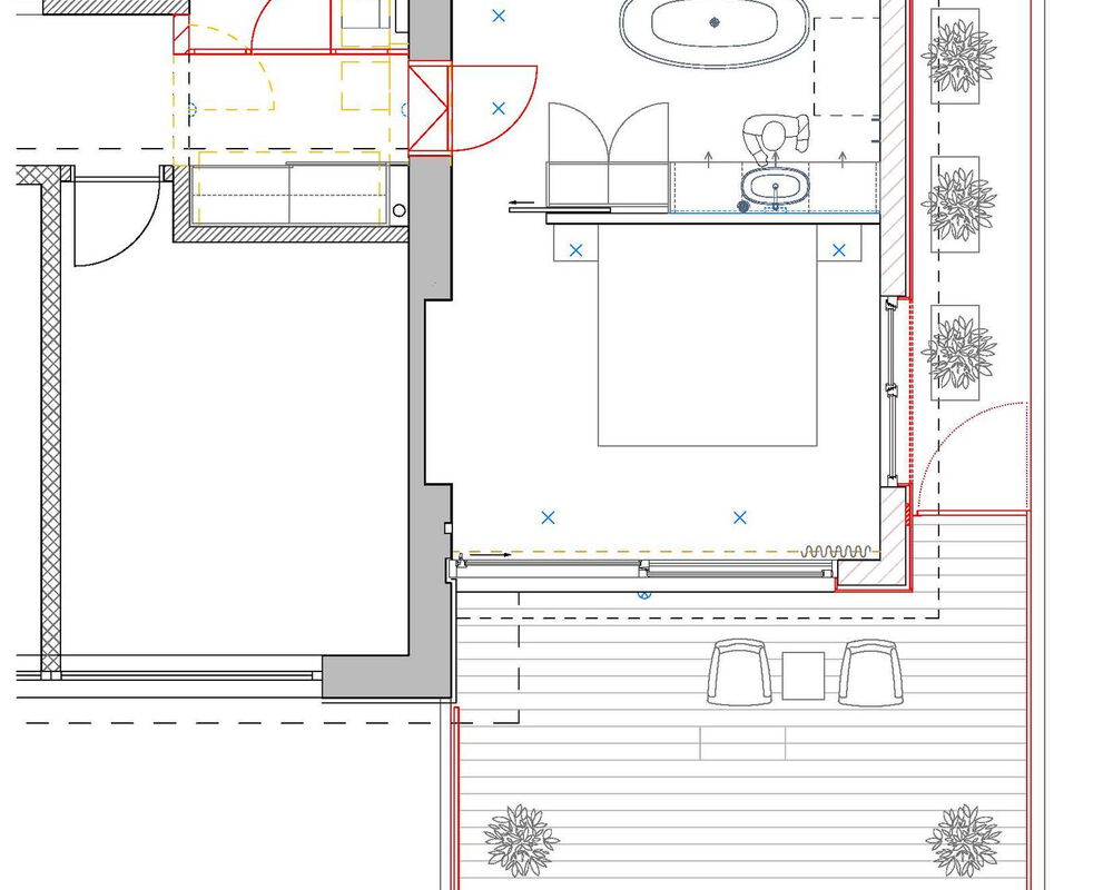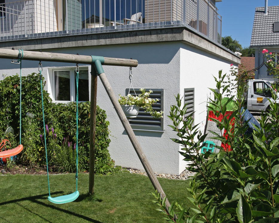 Aufgrund von Familienzuwachs wird das EFH erweitert. Ein neuer Elternbereich mit eigenem Bad und Aussenbereich wird als Holzbau erstellt und auf der bestehenden Garage an das OG angefügt; dazu muss das alte Bad rückgebaut und neu organisiert werden - alles im bewohnten Zustand.